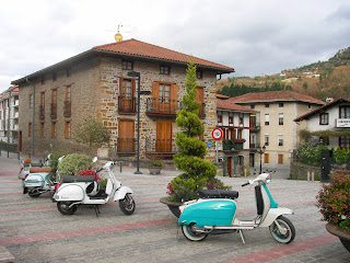 Pero, como somos de Bilbao, descubrimos que podemos aparcar las motos al lado de los helicópteros.